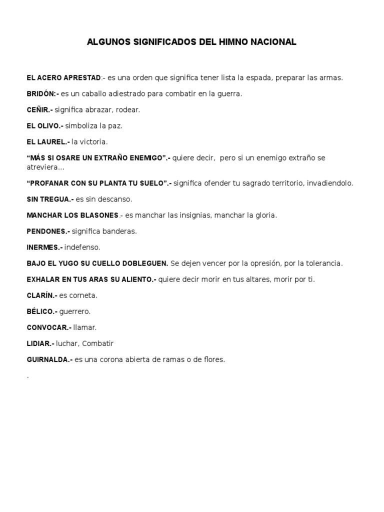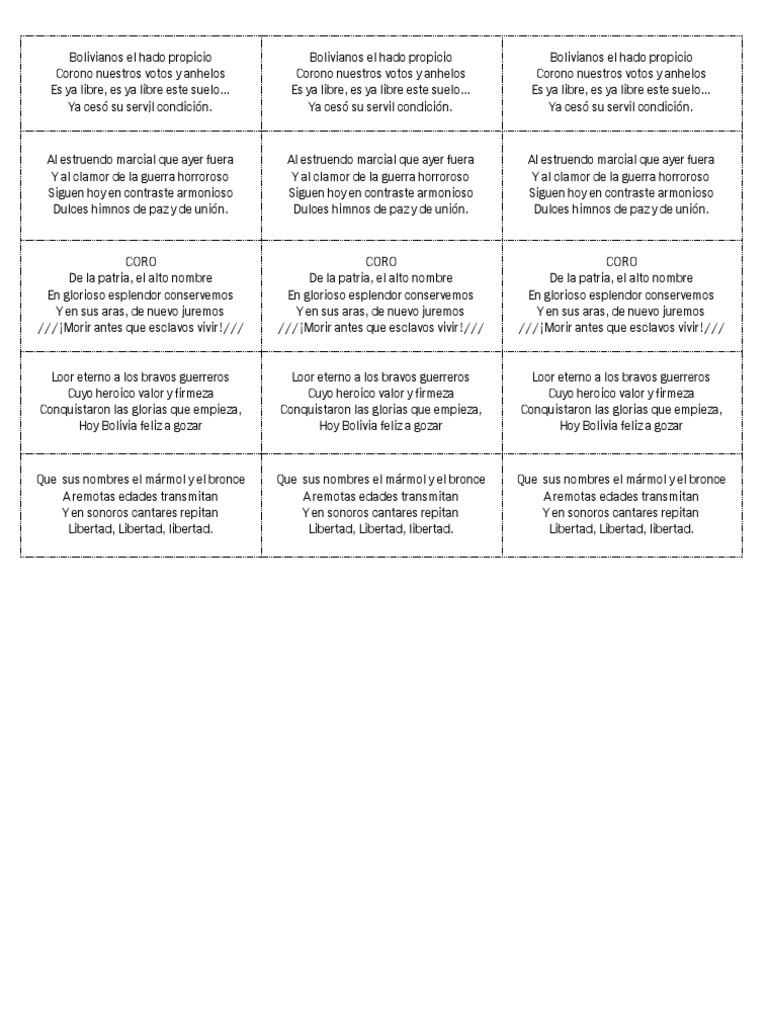El hado propicio coronó nuestros votos y anhelos. Como ya sabes, un himno nacional es una composición musical que identifica y une a todos los ciudadanos de un mismo país. Its servile state has now finally ceased. El himno nacional del estado plurinacional de bolivia (originalmente llamado canción patriótica), es el himno nacional de bolivia. Conquistaron las glorias que empiezan.